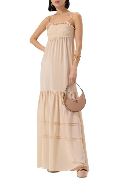 Платье на бретелях. Обхват груди 77 см, обхват талии 60 см, обхват бёдер 80 см, длина изделия по спинке 195 см, минимальная длина изделия 165 см.