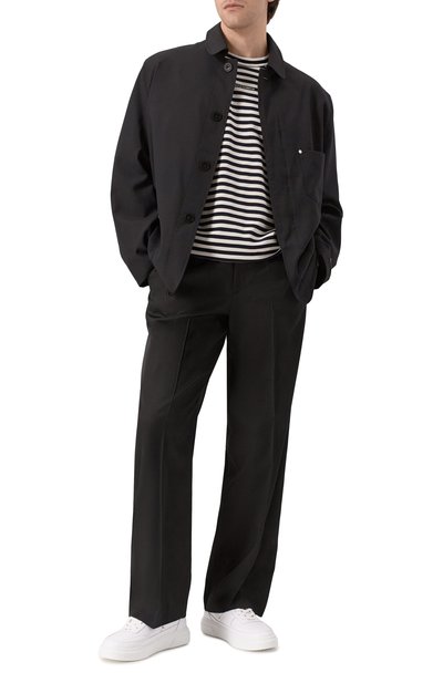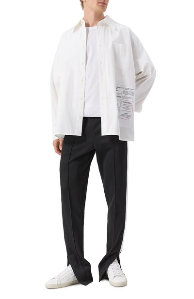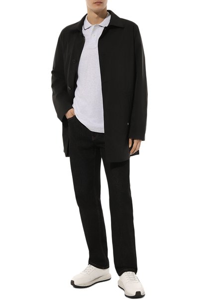 Кеды из телячьей кожи украсили фактурным мотивом на союзке и заднике. В тон контрастному логотипу сбоку и на язычке сделали кант, подчеркивающий форму модели.