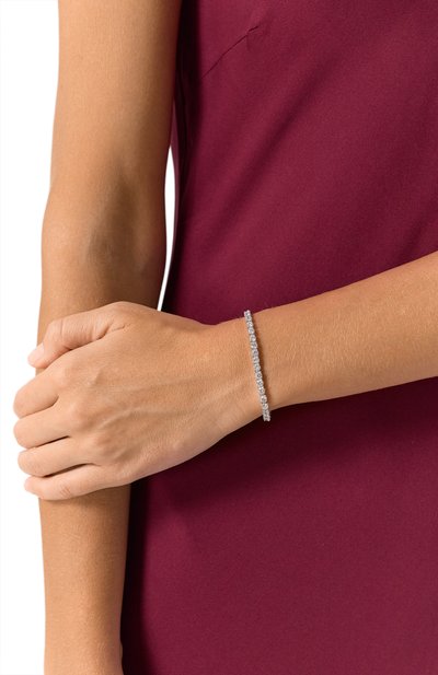 Браслет Matrix со скульптурным узлом изготовили из латуни с гальваническим покрытием родием. Аксессуар инкрустировали циркониями багетной огранки, каждый из которых закрепили крапанами.