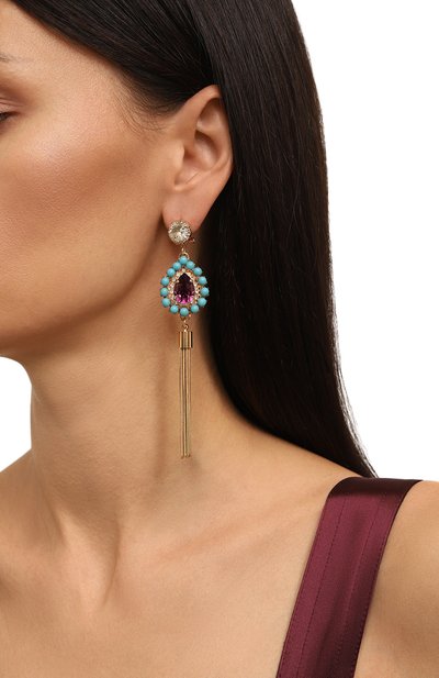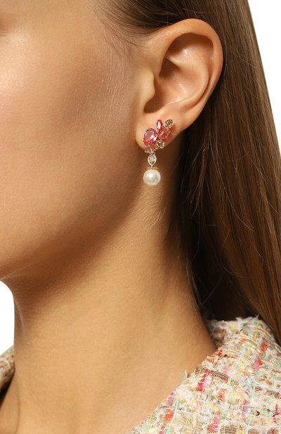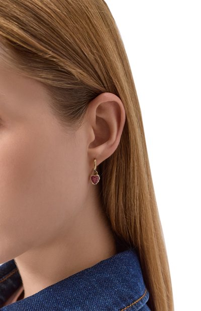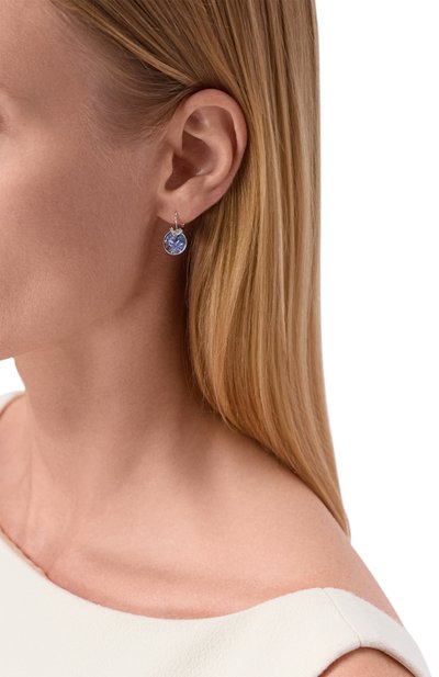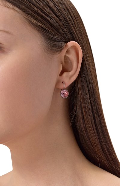Серьги Bella с английской застежкой выполнили из латуни с гальваническим покрытием родием. Изделие украсили розовым кристаллом и V-образной вставкой с прозрачным паве.