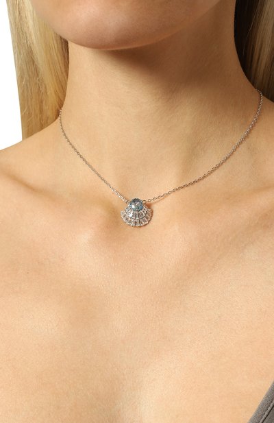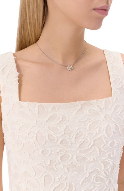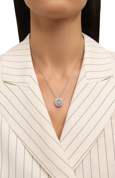 Для изготовления подвески Idyllia в форме сердца использовали латунь с родиевым покрытием. Модель с крупным подвижным кристаллом в центре и вставками из циркония, которые закрепили в технике chatonnage, дополнили регулируемой цепочкой с застежкой «лобстер» и брендированной вставкой.