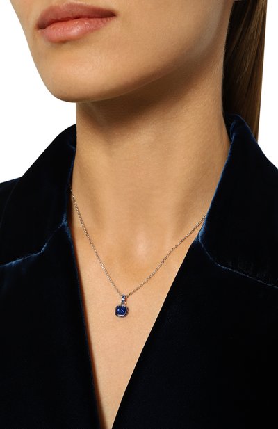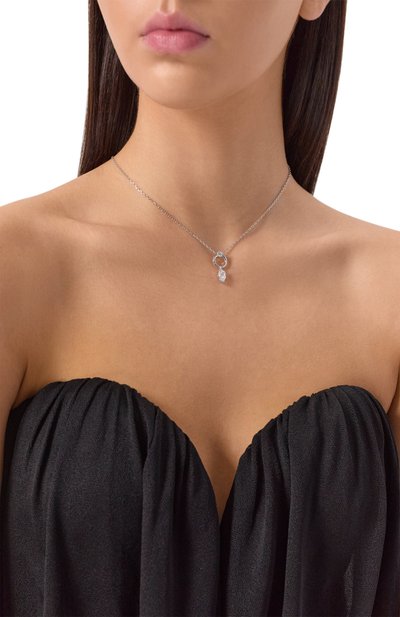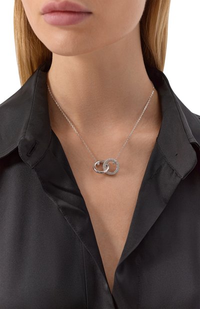 Для изготовления подвески-кольца Dextera с паве использовали латунь с гальваническим покрытием родием. Модель дополнили регулируемой цепочкой с застежкой «лобстер», рядом с которой расположили брендированную пластину.