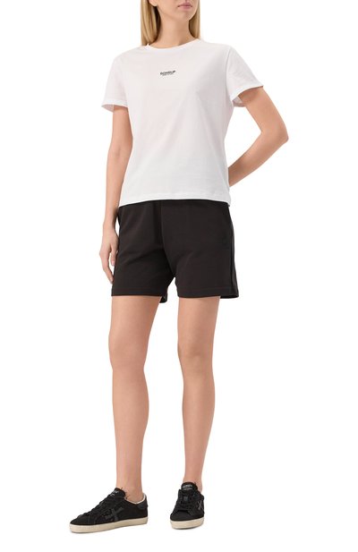 Кеды Belle на широкой подошве с фирменными печатями и штампами выполнили из гладкой кожи. Фигурную накладку на заднике украсили стразами, а текстильный язычок — брендированным патчем.