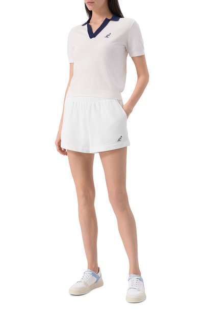 Поло Jaime выполнили из махрового хлопка. Спереди изделие украсили контрастной брендированной вышивкой, которой вторят отложной воротник и кайма на V-образной горловине.