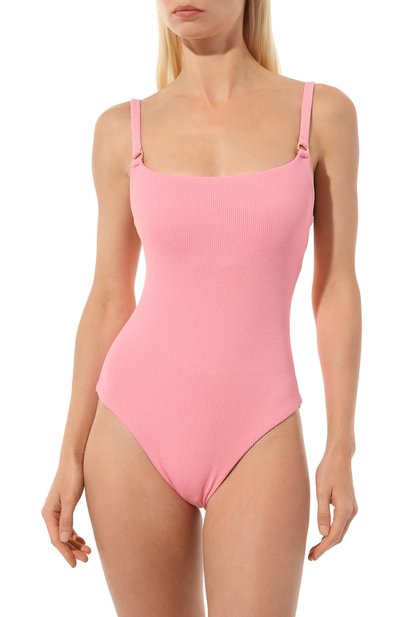 Полосатый купальник Lora из эластичной микрофибры украсили изображением желтого кенара Твити из Looney Tunes. Под открывающим спину вырезом слитной модели пришили фирменную бирку.