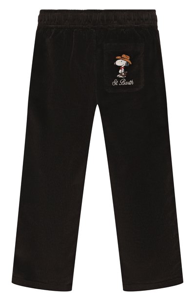 Брюки с двумя защипами и регули руемыми патами на эластичном поясе выполнили из хлопкового вельвета. Помимо двух боковых карманов на модели предусмотрели задние – врезной и накладной.