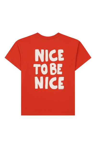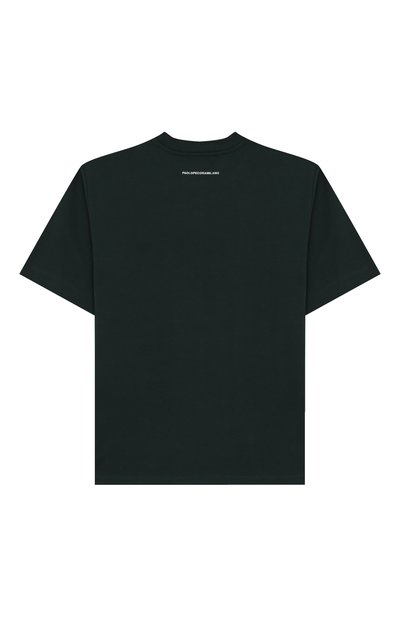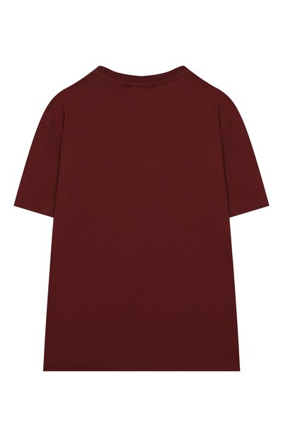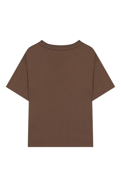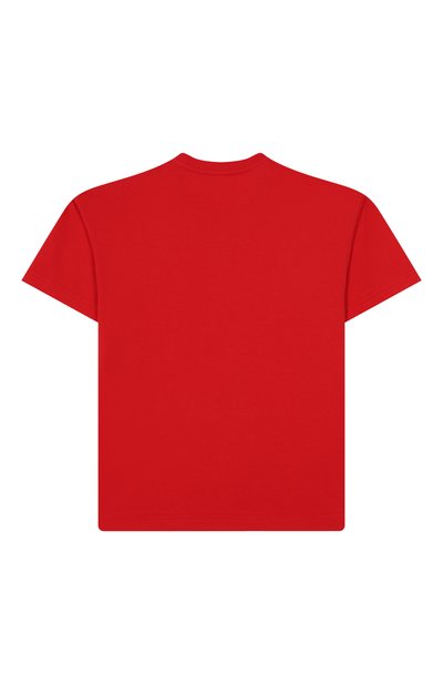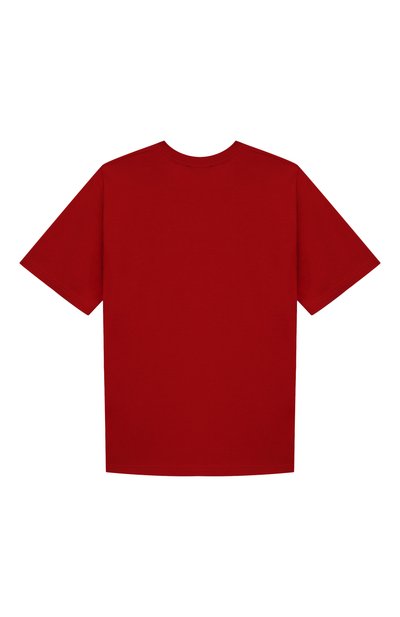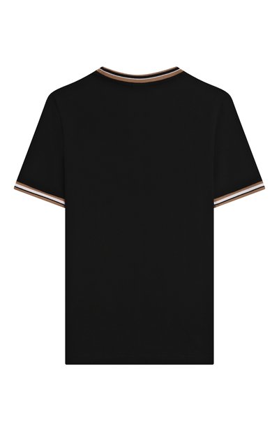 Футболку с контрастной брендированной нашивкой спереди выполнили из хлопкового джерси. Сзади изделие украсили небольшим логотипом марки.