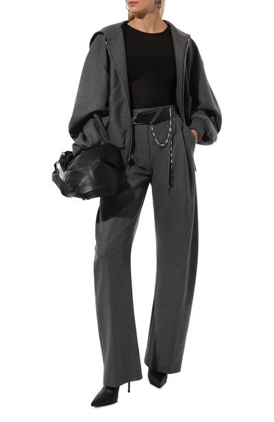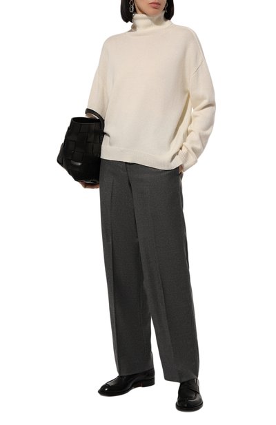 Свободные брюки Phebe с защипами выполнили из японской шерстяной ткани. Модель со шлевками на поясе дополнили задним и парой боковых карманов.
