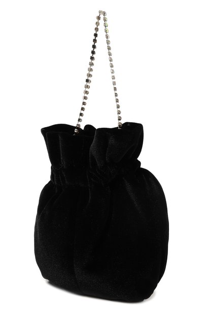 Сумку с короткой ручкой и съемным плечевым ремнем-цепочкой выполнили из бархата. Аксессуар с фирменной эмблемой на клапане застегивается потайной магнитной кнопкой.