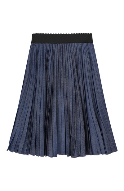 Представленную эксклюзивно в ЦУМе расклешенную юбку украсили металлической эмблемой на поясе. Фирменной детали вторит фактурный узор на полиэстеровой ткани.