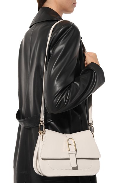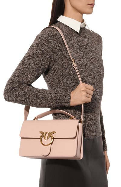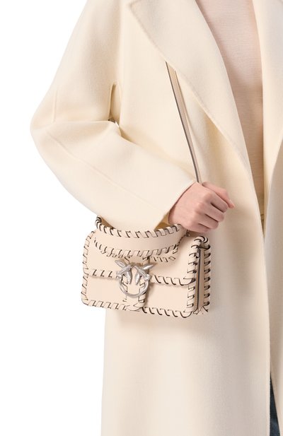 Сумка Love One из телячьей кожи закрывается клапаном на магнитной кнопке, украшенным металлической эмблемой Love Birds Diamond Cut. Силуэт двух ласточек повторяет вышивка на задней панели, скрывающая NFC-метку. Внутри предусмотрели два кармана: открытый и на молнии. В комплекте – комбинированный плечевой ремень.