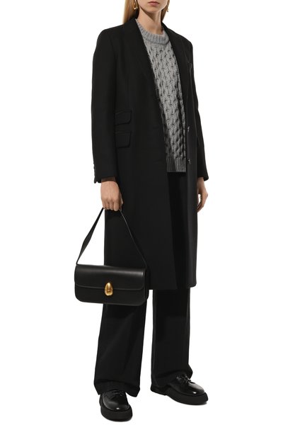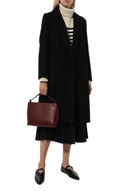 Утепленное синтепоном пальто Mapur с воротником и манжетами в рубчик выполнили из драпа на основе шерсти и полиамида, а рукава – из атласа. Модель с двумя карманами по бокам и еще одним многосоставным на левом рукаве застегивается встречной молнией, скрытой под ветрозащитной планкой на кнопках.