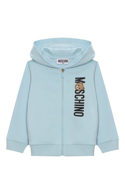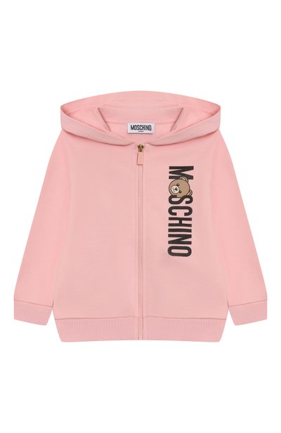 Спортивный костюм с фирменными принтами сшили из хлопкового трикотажа. Толстовку с воротником-стойкой дополнили двумя накладными карманами, а джоггеры с широким поясом — парой врезных.