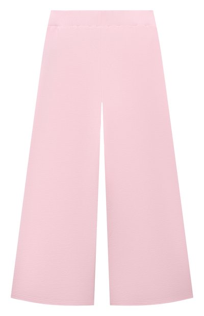 Широкие брюки с высокой посадкой выполнили из смесовой шерстяной пряжи. Модель с эластичным поясом в рубчик украсили контрастным брендированным патчем.