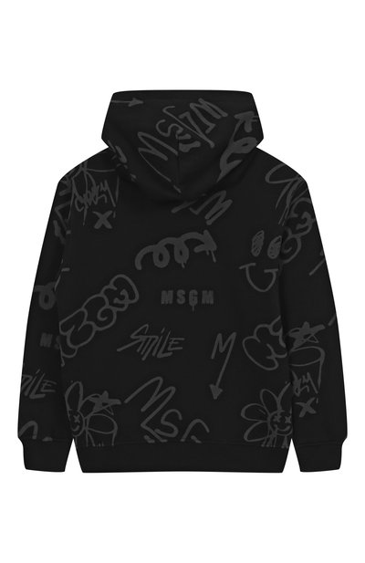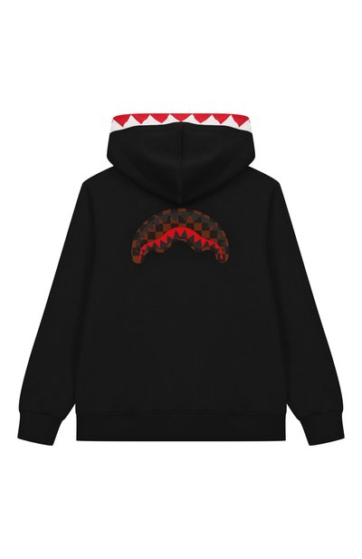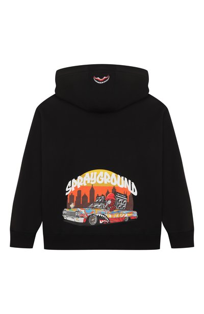 Худи с рифлеными манжетами и поясом выполнили из хлопкового футера. Карман с принтом в стиле граффити спереди дополнили изображением абриса челюсти акулы.
