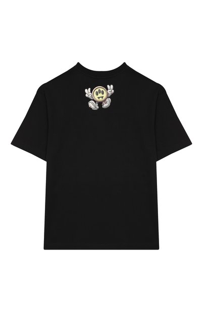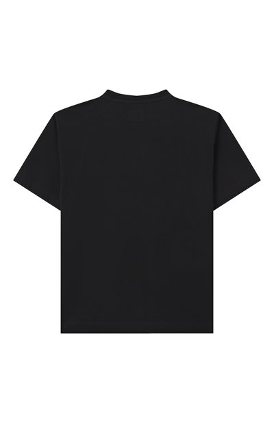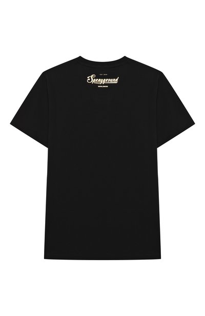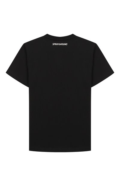 Футболку с круглой горловиной в рубчик выполнили из хлопкового трикотажа. Спереди и сзади модель украсили принтом в стиле граффити, в который вписали фирменный абрис акульей челюсти.