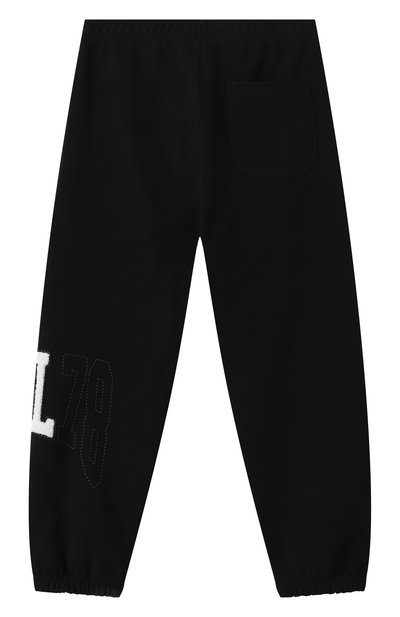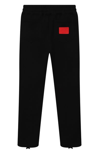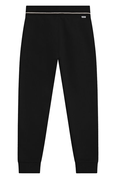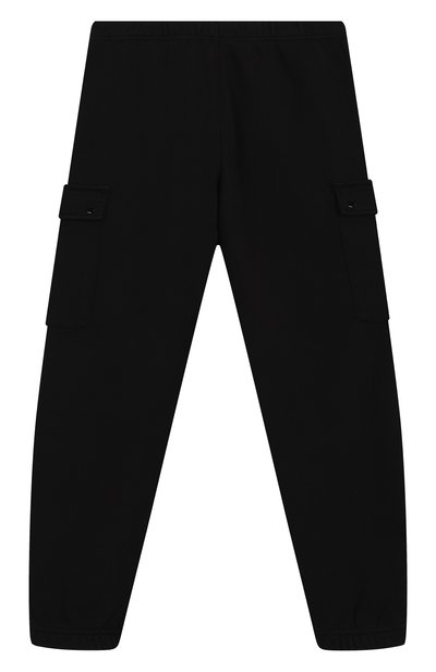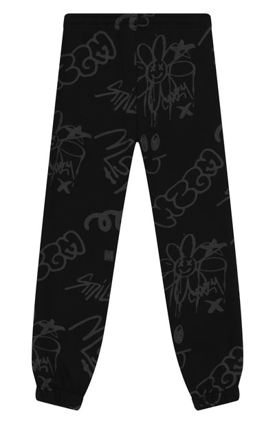 Джоггеры с эластичным поясом-кулиской выполнили из хлопкового трикотажа. На брючинах модели напечатали логотип и яркий принт с фирменным абрисом акульей челюсти.