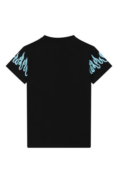 Футболку прямого кроя сшили из хлопкового трикотажа. Модель с круглой гор ловиной украсили логотипом марки сзади и крупной эмблемой спереди.