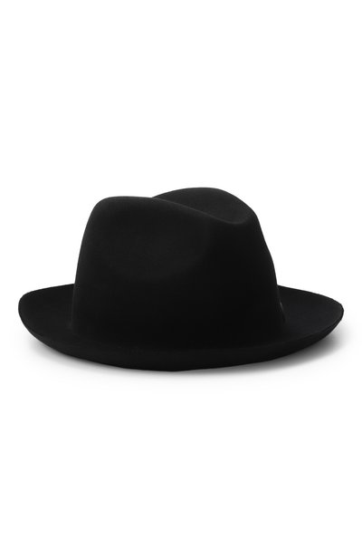 Шляпу изготовили из плотного шерстяного фетра, хорошо удерживающего форму. Тулью украсили кожаным ремешком с металлическим логотипом.