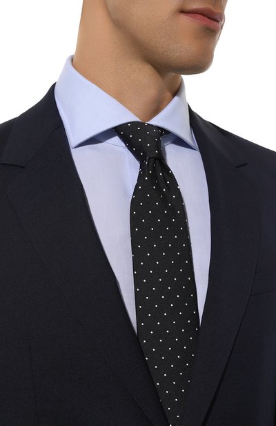 Галстук с полосатым диагональным узором изготовили из шелкового жаккарда. Аксессуар с выполненным вручную задним швом легко укладывается в узел и быстро восстанавливает форму после развязывания.
