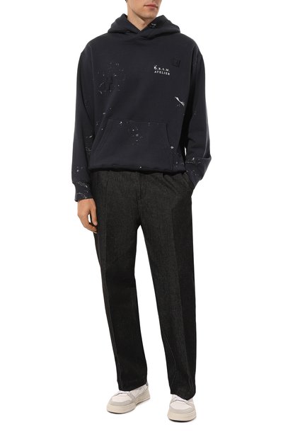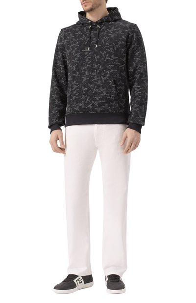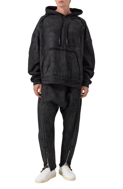 Худи с карманом «кенгуру» сшили из шерстяного трикотажа с объемным леопардовым узором. Эластичную модель дополнили манжетами и широким поясом в рубчик.