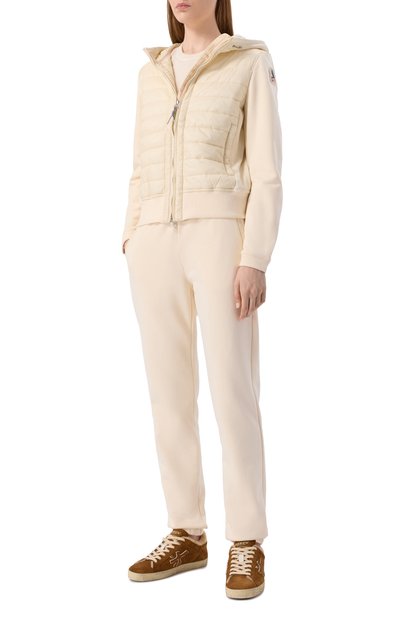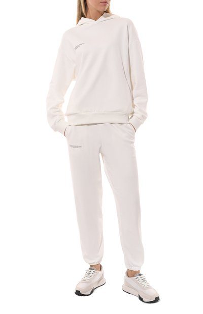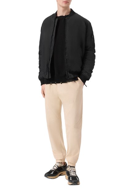Для изготовления джоггеров из капсульной коллекции Travel Essentials использовали стрейчевый трикотаж из хлопка и полиэстера. Сзади модель с поясом в рубчик и врезными боковыми карманами декорировали эмблемой марки.