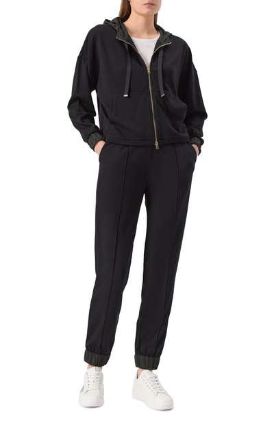 Джоггеры из капсулы Travel Essentials выполнили из хлопкового трикотажа стрейч с добавлением полиэстера. Сзади модель с парой карманов и эластичным поясом дополнили нашивкой с фирменной эмблемой.