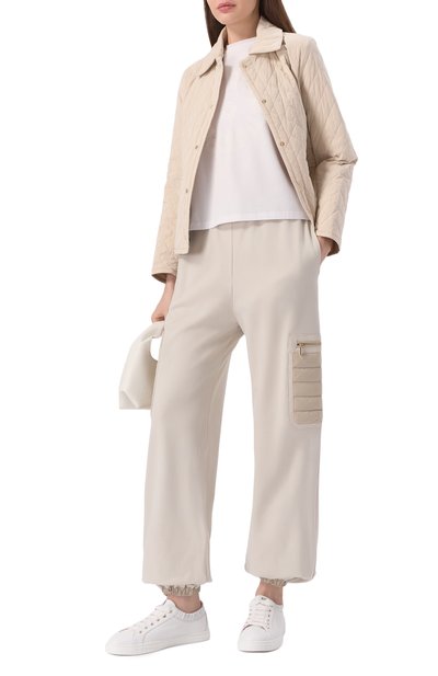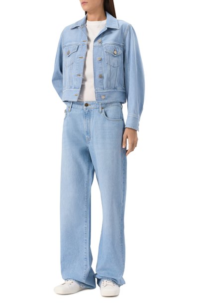 Футболку с круглой горловиной и спущенной линией плеч дополнили разрезами по бокам. Модель из хлопкового интерлока украсили фирменной металлической заклепкой снизу.