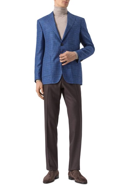 Однобортный пиджак Gio Needlecord со строчкой AMF выполнили из итальянского хлопкового вельвета. Модель с двумя боковыми и нагрудным карманами дополнили еще тремя внутренними.
