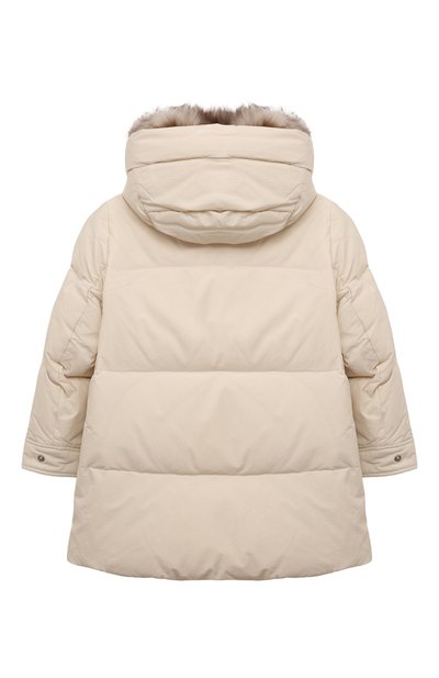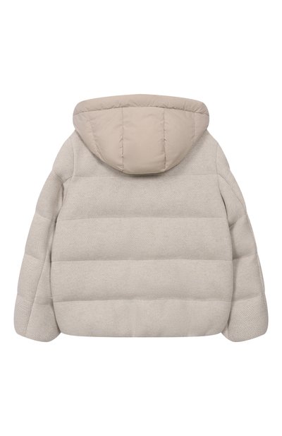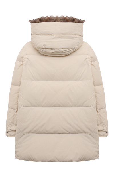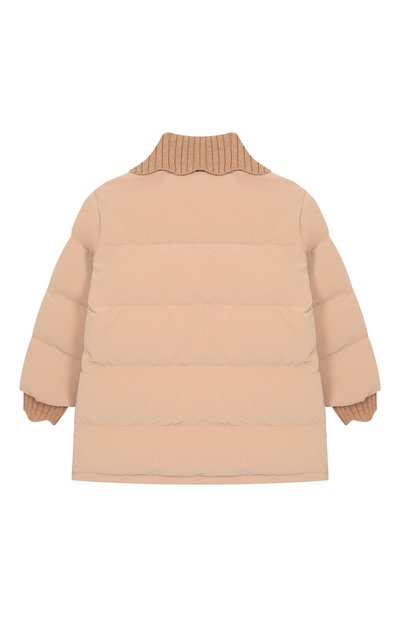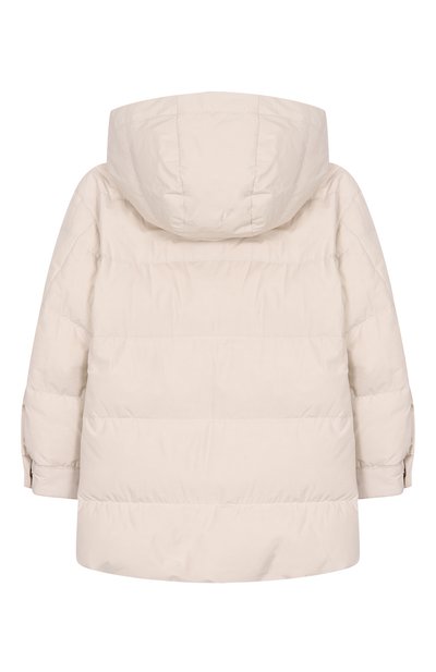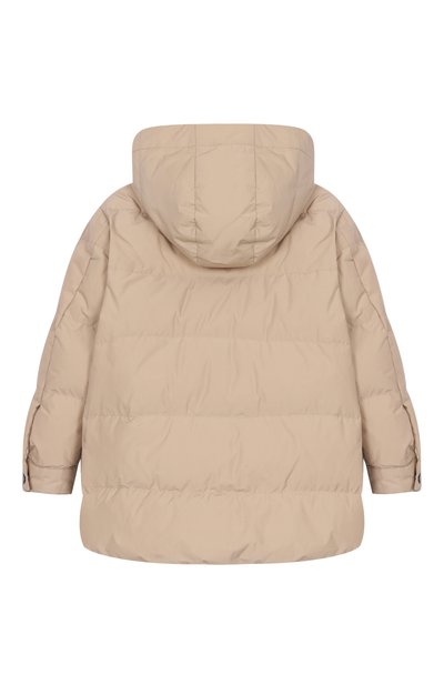 Пуховик с капюшоном и боковыми карманами дополнили манжетами из трикотажа в рубчик. Модель из непродуваемого нейлона украсили фактурным патчем в виде 3D-монограммы DG с кантом из пайеток.