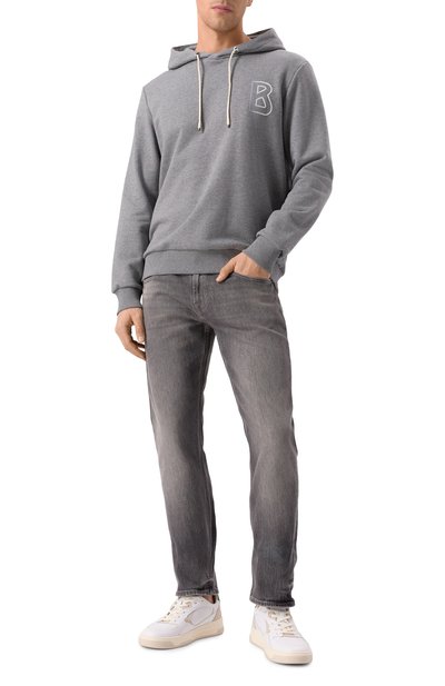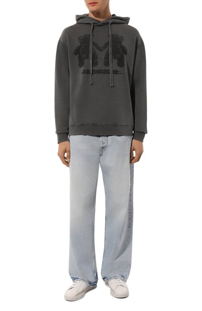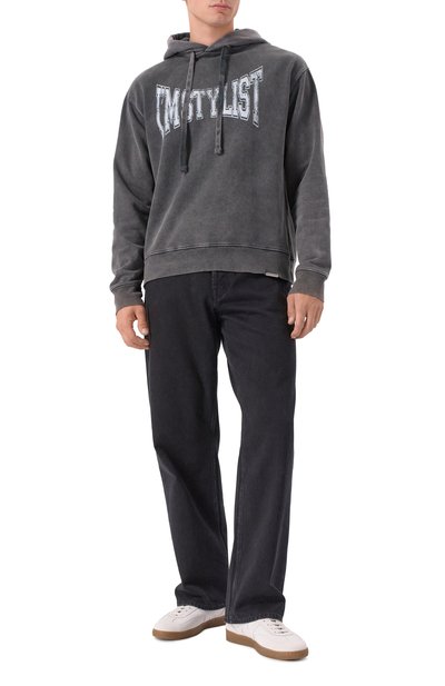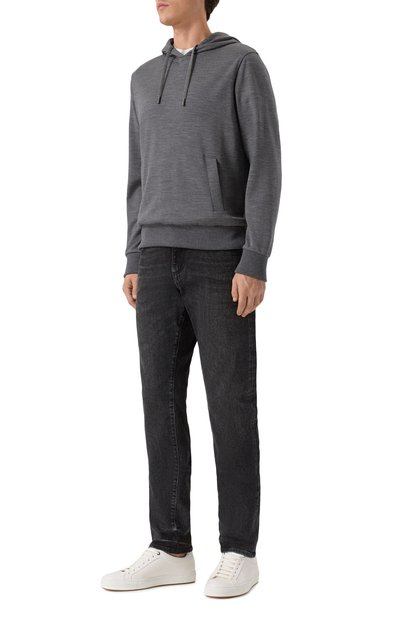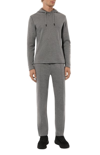 Худи с манжетами и поясом в рубчик сшили из трикотажа на основе кашемира. Модель одинаково комфортно носить и поверх футболки, и на голое тело.