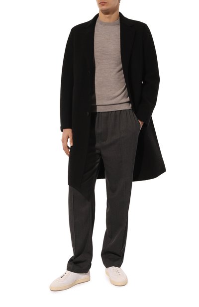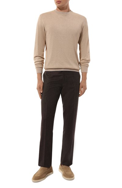 Джемпер с горловиной, манжетами и поясом в рубчик сшили из тонкого шерстяного трикотажа. Однотонная модель без декора удачно дополнит базовый гардероб.