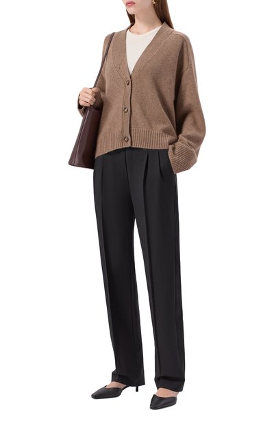 Кардиган Kaia со спущенной линией плеч, разрезами по бокам и V-образным вырезом связали из кашемира, сертифицированного Oeko-Tex® Standard 100. Свободная модель застегивается тремя пуговицами.