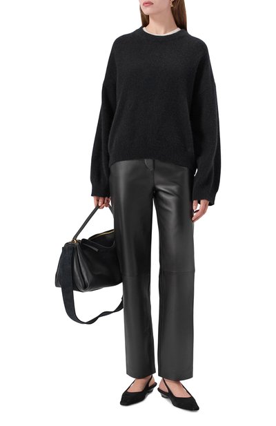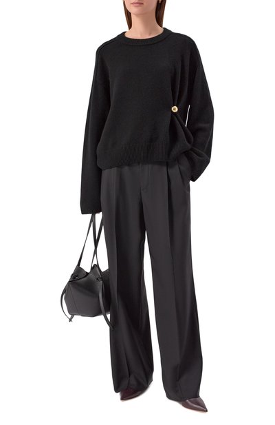 Свитер Safi LDS с удлиненной спинкой, спущенной линией плеч и разрезами по бокам связали из шерстяной пряжи с добавлением кашемира. Снизу модель с круглой горловиной, манжетами и поясом в рубчик украсили вышитой эмблемой марки.