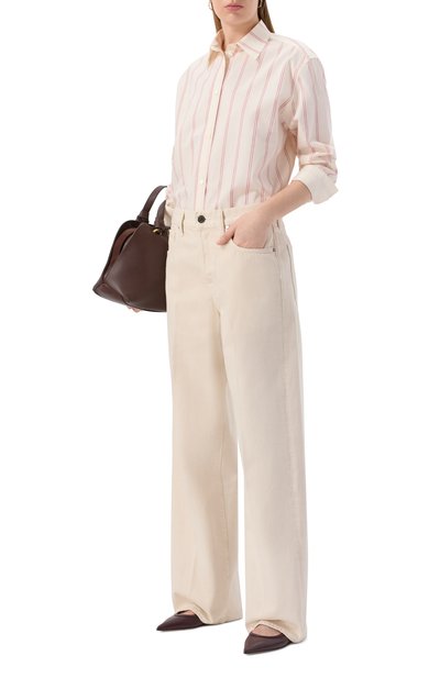 Джинсы Asmar со средней посадкой сшили из бархатистого органического хлопка. Пояс украсили брендированным патчем. Модель свободного кроя дополнили пятью карманами.