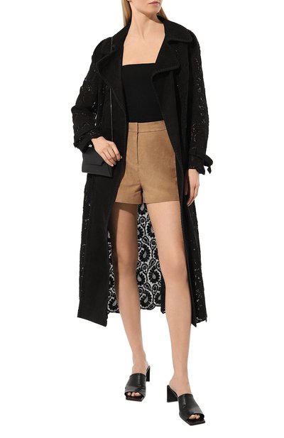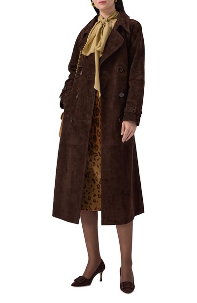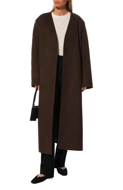 Пальто Miller с круглой горловиной и слегка спущенной линией плеч дополнили боковыми карманами. Модель из телячьей кожи застегивается потайными пуговицами.