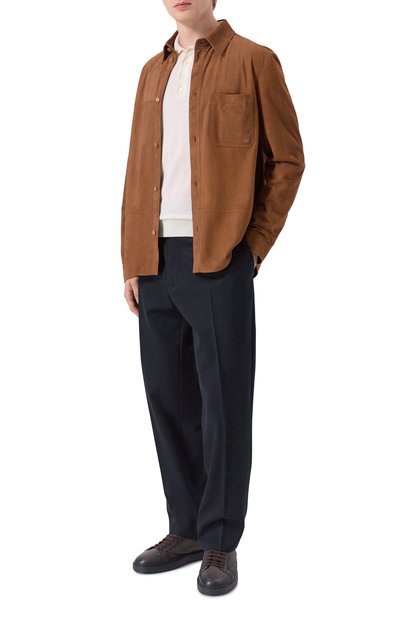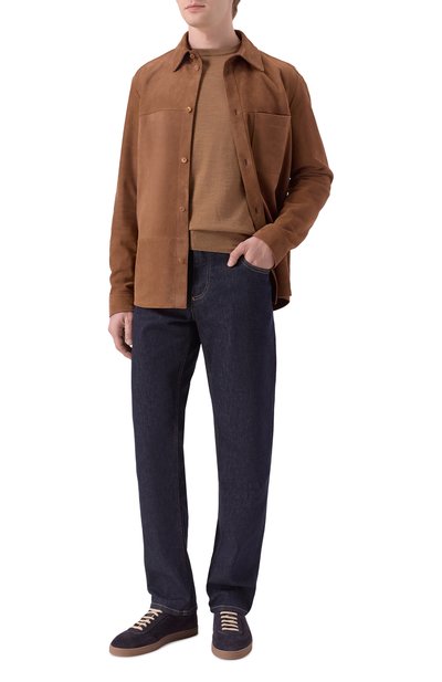 Рубашку сшили из денима с паттерном GG Supreme и однотонной ткани из микса шерсти и полиэстера. Двусторонняя модель с рельефным логотипом на одном из нагрудных карманов застегивается фирменными кнопками.
