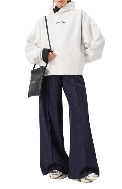 Для пошива худи со спущенной линией плеч выбрали двухслойное хлопковое джерси. Модель с эластичными манжетами и поясом декорировали акцентным принтом Gucci vintage.