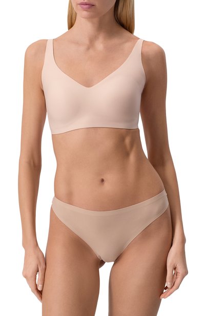Для создания бюстгальтера на узких регулируемых бретелях выбрали полупрозрачный стрейчевый полиамид. Сзади модель без косточек застегивается тремя потайными крючками с четырьмя вариантами объема.