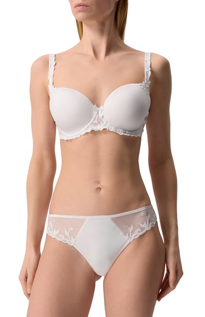 В коллекцию Essential вошли трусы-бразилиана с плоскими эластичным поясом и тщательно проработанными краями. Полупрозрачную модель изготовили из стрейчевого шелка.