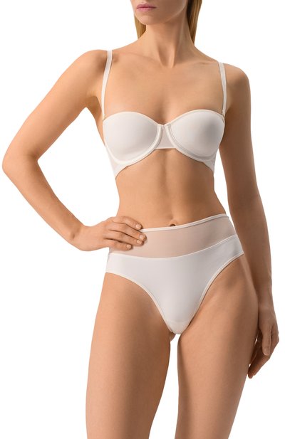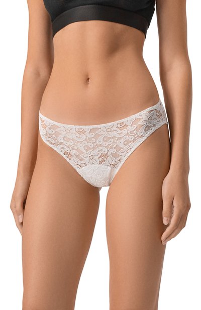 Трусы-слипы со средней посадкой выполнили из полупрозрачного шелка стрейч. Модель с плоскими швами оставили без декора.