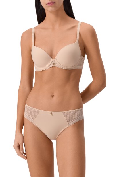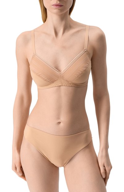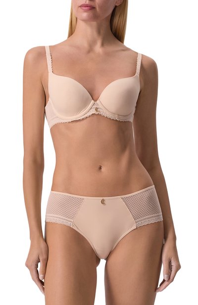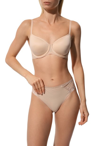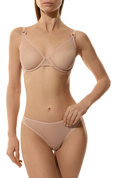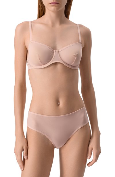 Трусы-слипы со средней посадкой выполнили из полупрозрачного шелка стрейч. Модель с плоскими швами оставили без декора.