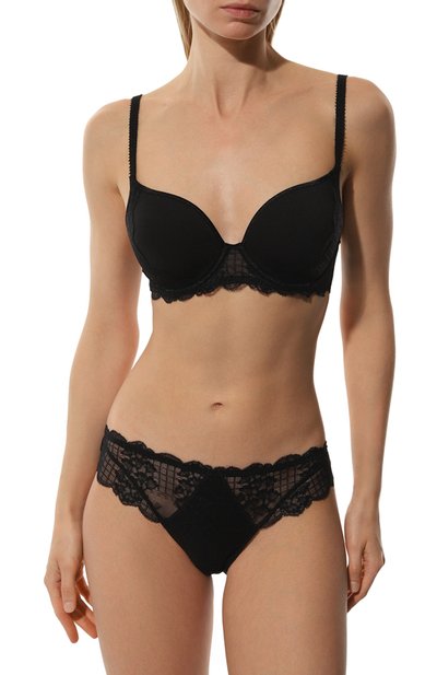 Бюстгальтер мягкими чашечками на косточках и регулируемыми бретелями выполнили из стрейчевого полиамида. Модель из коллекции Essential застегивается двумя потайными крючками с четырьмя вариантами объема.