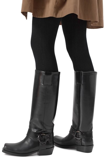 Сапоги Bernini из телячьей кожи, дополненные ремешками с пряжками, напоминают обувь байкеров. Модель на молнии сзади установили на подошву и каблук с протектором.