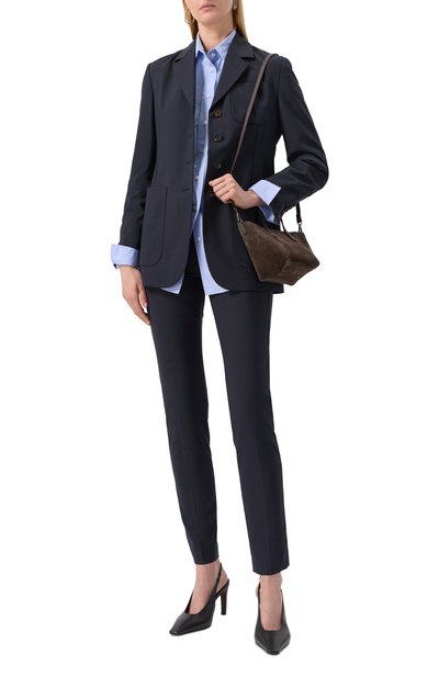 Зауженные брюки с принтом Majolica сшили из фактурной ткани на основе хлопка и вискозы. Модель с отутюженными стрелками дополнили боковыми и задними карманами.