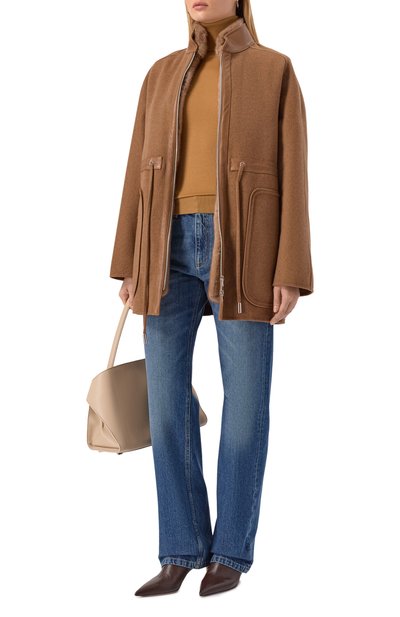 Куртку с боковыми ремешками на поясе и двумя парами карманов выполнили из слегка выбеленного хлопкового денима. Модель украсили множеством фигурных аппликаций с кристаллами, бусинами и бисером.