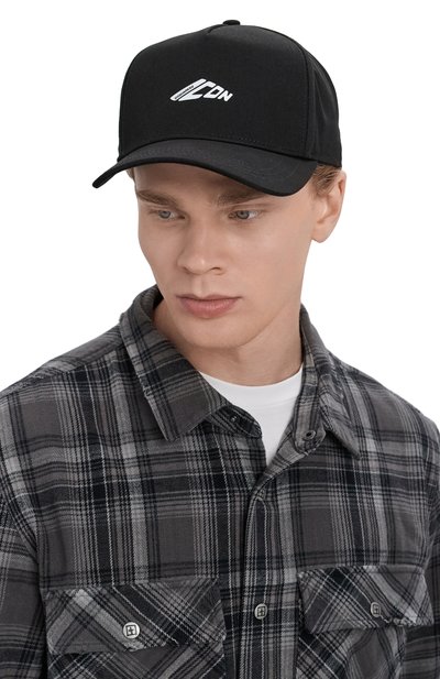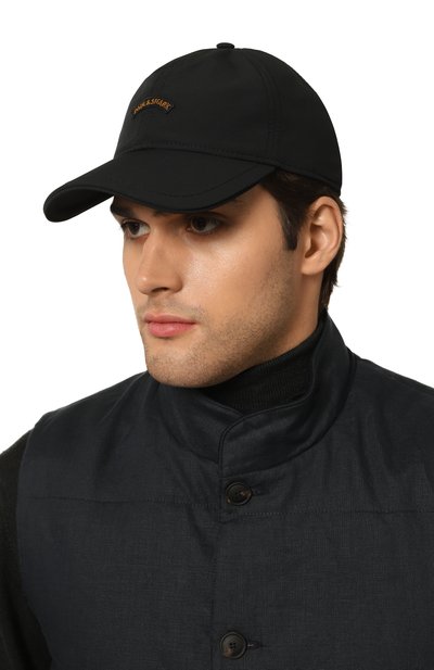 Бейсболку с изогнутым козырьком сшили из нейлона с жаккардовым брендированным паттерном. Аксессуар с металлическим логотипом марки на тулье дополнили хлопковым подкладом и регулируемым ремешком велкро сзади.