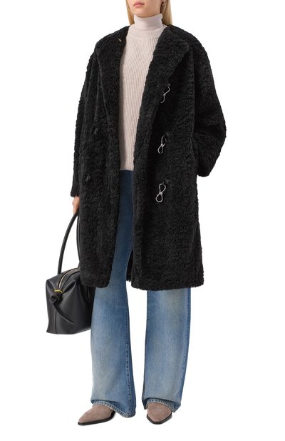 Шубу Catedy с широкими лацканами выполнили из экомеха, а для изготовления подкладки использовали микс полиэстера и вискозы. Модель с двумя накладными карманами застегивается пуговицами в тон.