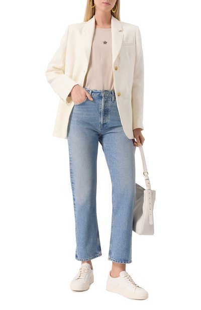 Полуприлегающий лонгслив с круглой горловиной станет комфортной основой домашних образов. Для пошива модели использовали меланжевый трикотаж на основе модала с добавлением эластана.