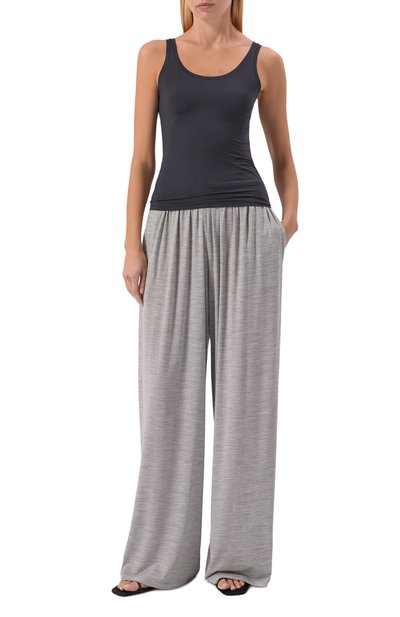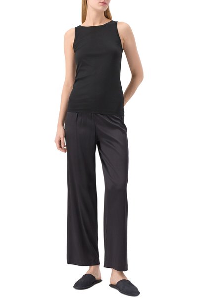 Для создания топа зауженного кроя выбрали джерси на основе модала с добавлением эластана. Проймы и круглую горловину отделали кантом из такого же материала.